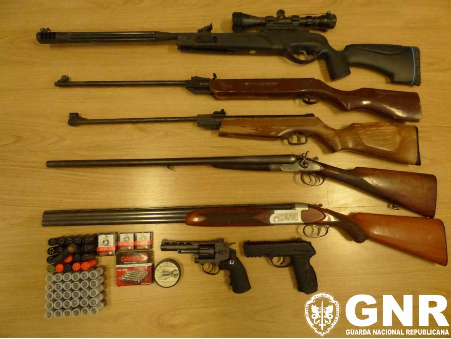 No âmbito de uma investigação por violência doméstica, que decorria há cerca de quatro meses, os militares da Guarda apuraram que o suspeito exercia violência psicológica e física contra a vítima, sua esposa de 35 anos. No seguimento da investigação, foi dado cumprimento a um mandado de busca, que culminou na apreensão de diverso material nomeadamente duas armas caçadeiras; três carabinas de ar comprimido; duas pistolas de ar comprimido; 51 munições de diversos calibres; quatro caixas de projéteis, vulgarmente designados por “chumbos”, de diversos calibres e uma caixa de cargas de CO₂, com três unidades de 12g.